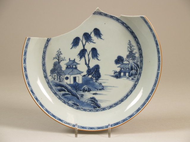 Scherf van een schaal met decor van landschap met paviljoen en wilg (Nederlands)