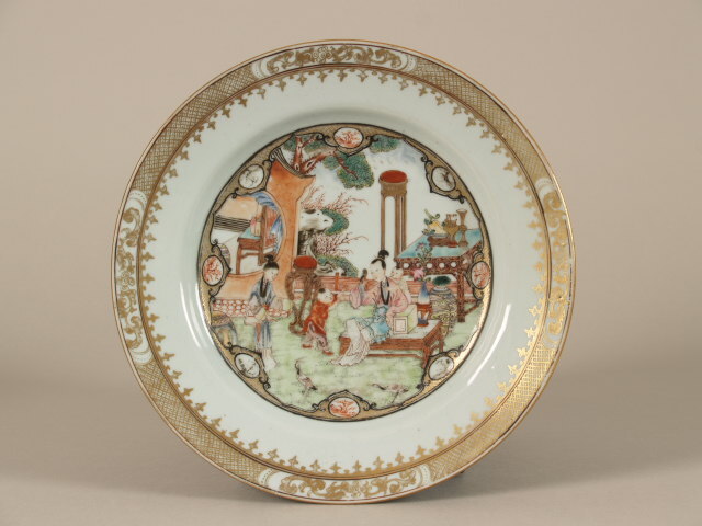 Bord met decor van terras en figuren, famille rose (Nederlands)