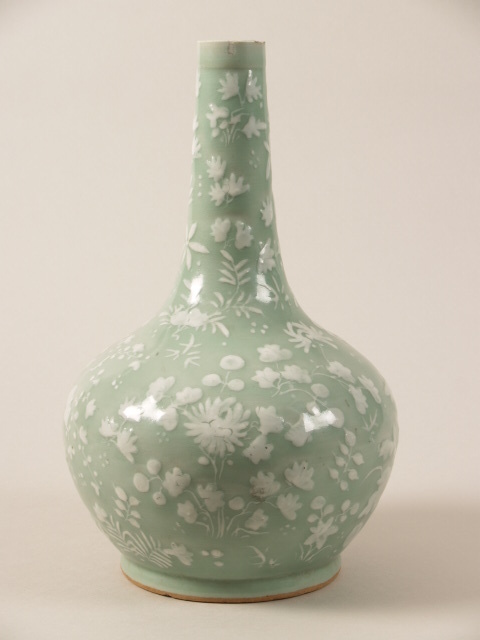 Vaas met slibdecoratie van bloemen, celadon (Nederlands)