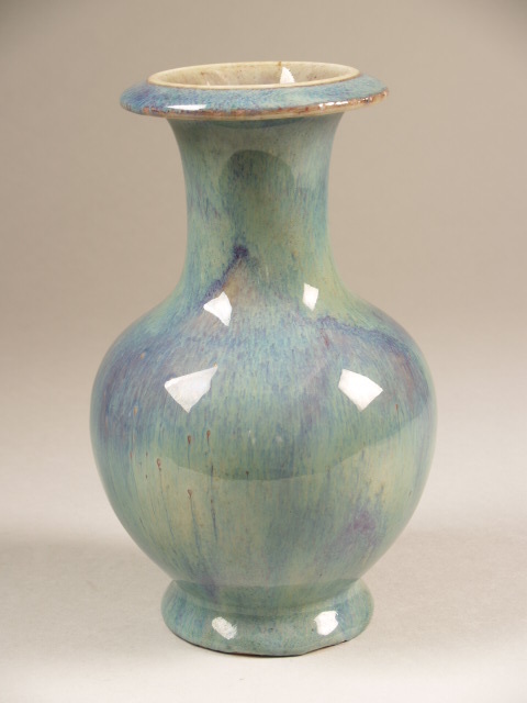 Vaas met hoge hals en gecraqueleerd flambé glazuur (Nederlands)