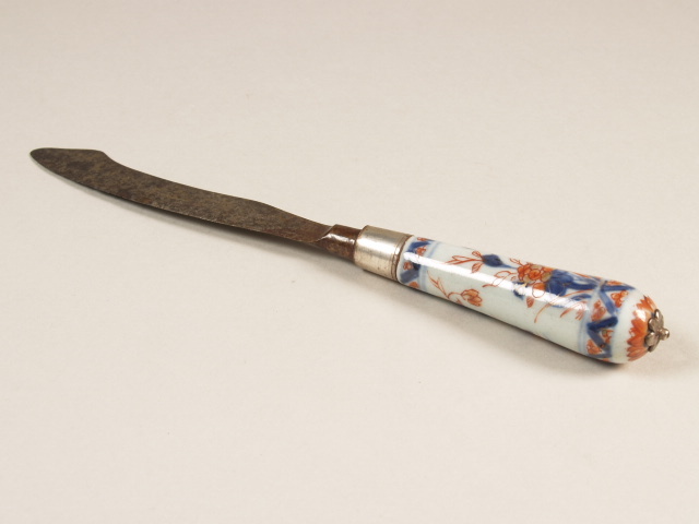 Mes, waarvan het heft een floraal decor heeft in Chinese imaristijl (Nederlands)