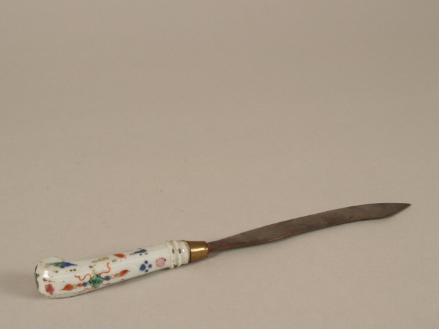 Mes met porseleinen heft met decor van symbolen (Q24639)