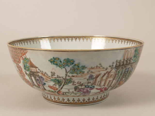 Kom met decor van landschap, gebouwen en menselijke figuren, mandarijnporselein (Nederlands)