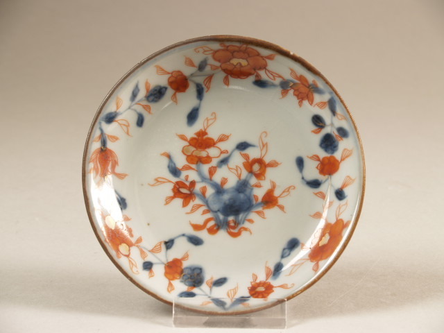 | Nederlands | Schoteltje met intern een polychroom imaridecor van bloeiende planten, extern bruin |
