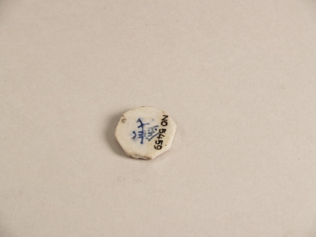 Miniatuurtegel, achthoekig, met decor van Chinese karakters in reliëf (Q24695)