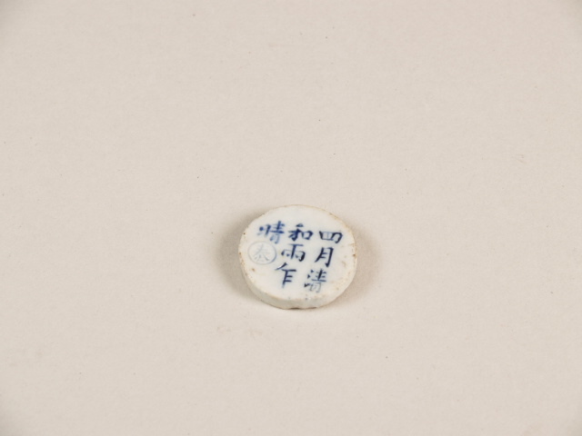 Miniatuurtegel, rond, met decor van qilin in reliëf en inscriptie (Q24697)