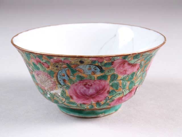 Kom met decor van bloemen op een verguld fond, famille rose (Nederlands)