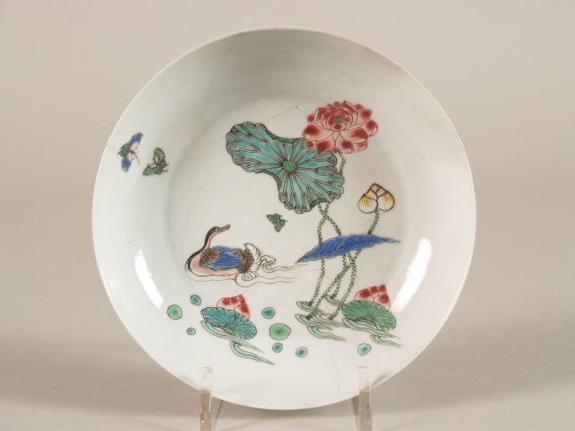 Schaal met decor van eend in lotusvijver, famille rose (Q24704)