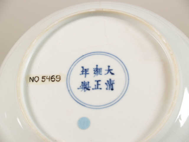 op de bodem in kobaltblauw horizontaal zesmerk Yongzheng in dubbele ring. (Nederlands)