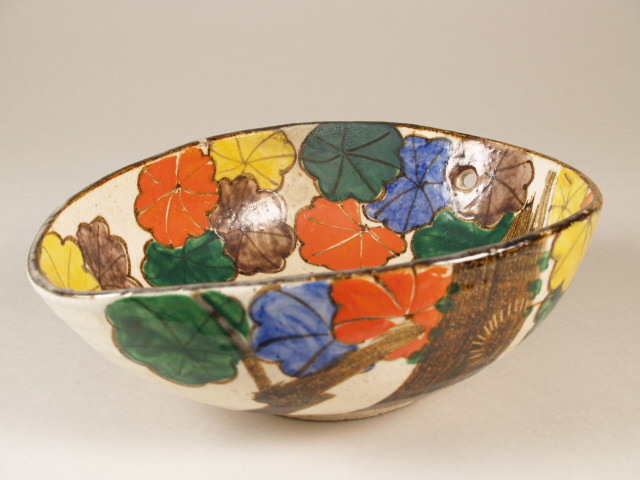 Kom met decor van bladeren, ovaalvormig (Nederlands)