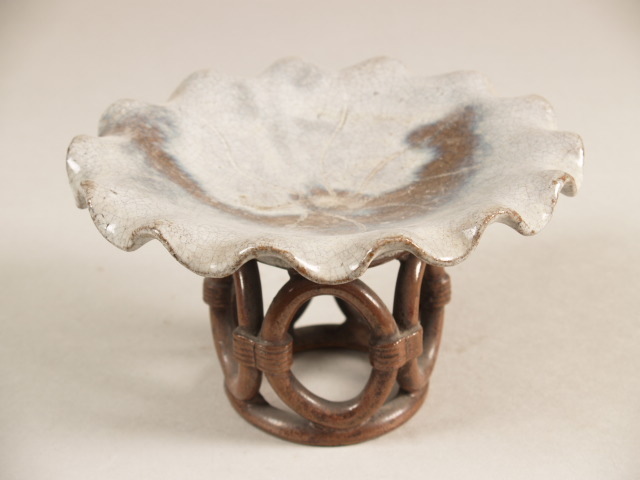 Schaal op voet in de vorm van een rond blad op een open taboeret, Aganostijl (Nederlands)