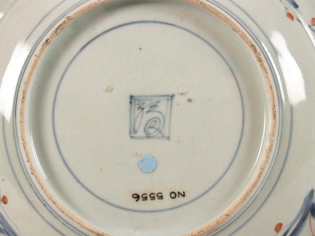 op de bodem in kobaltblauw: "Fuku" in dubbel vierkant, in een wijde ring. (Nederlands)