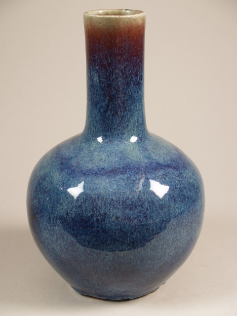 Vaas met lange hals en bedekt met flambé glazuur (Nederlands)