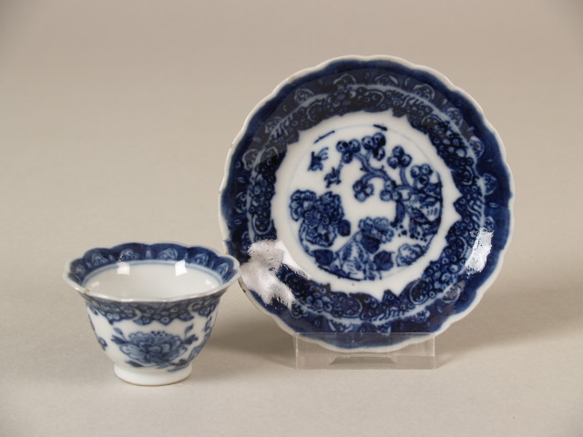 | Nederlands | Kop en schotel met decor van bloeiende pioenrozen en prunis |