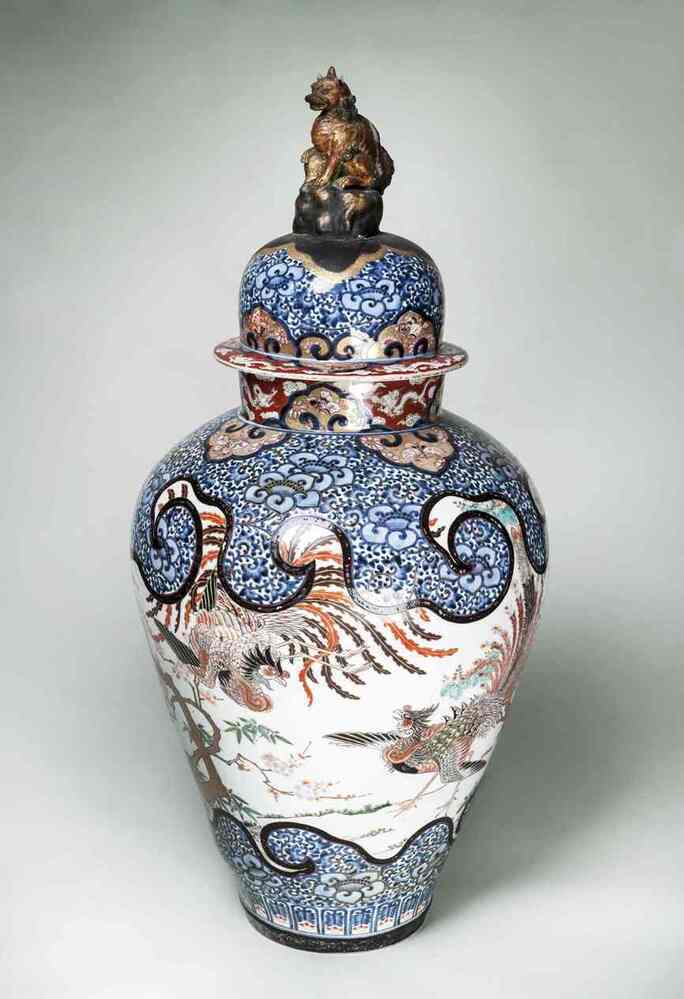 Pot met polychroom decor van vogels en pijnbomen, imari (Nederlands)