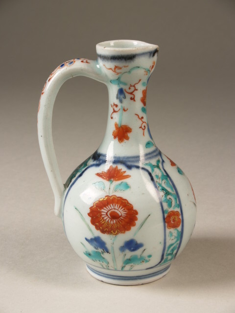 Kan met op de buik een decor van vakken waarin bloemen, Arita (Nederlands)