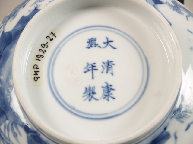in kobaltblauw op de bodem zesmerk Kangxi in dubbele ring (Nederlands)