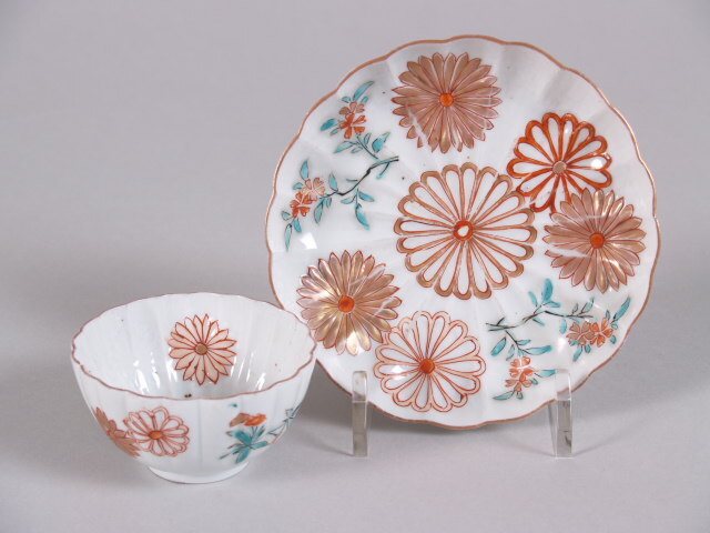 Kop en schotel met decor van chrysanten en gelobd als een bloem, 1 van 3 (Nederlands)