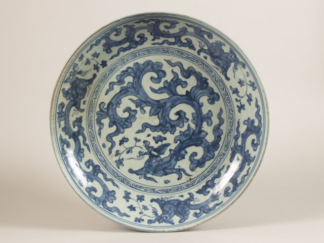| Nederlands | Schotel met decor van draken en krullende bladranken |