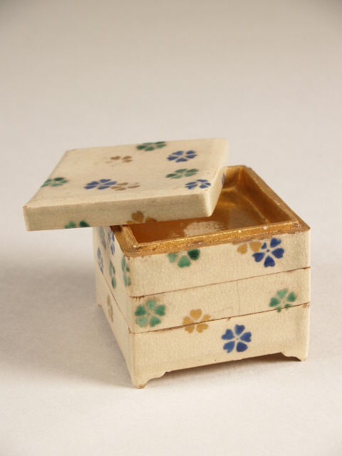 Doosje met deksel, voor cosmetica, vierkant en met decor van gezaaide rozetjes (Nederlands)