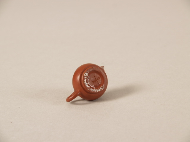 | Nederlands | Theepotje, miniatuur, met decor van ingegrifte karakters en knop in de vorm van een bamboetakje |