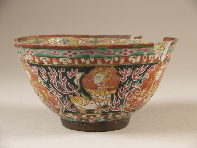 | Nederlands | Kom met decor van mandorla's met hierin mannelijk figuur |