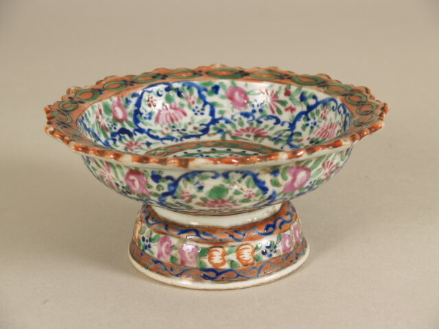 Schaal op voet met decor van plantaardige motieven, Bencharong