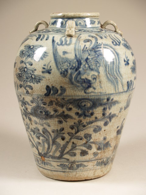 Pot met 4 handvatten met decor van feniks en bloeiende ranken (Q25011)