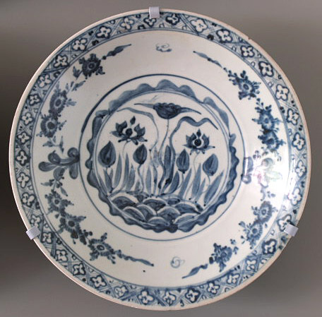 Schotel met decor van lotus en andere bloemen, Swatow (Nederlands)