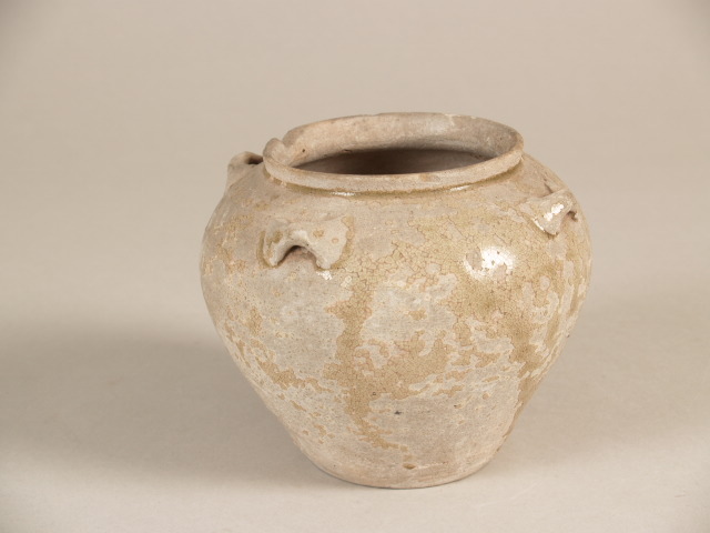 | Nederlands | Pot met 4 oren met verweerd groen glazuur |