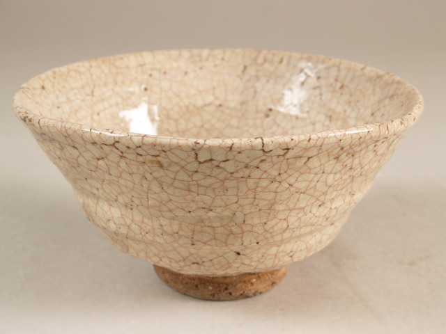 Kom, bedekt met een gecraqueleerd crèmekleurig gespikkeld glazuur (Nederlands)
