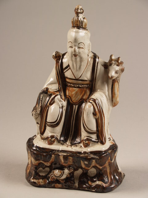 Beeld in de vorm een man, Shoulao, zittend met hert, cizhou (Nederlands)