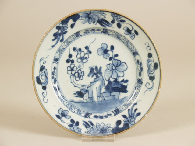 Bord met decor van bloemen en rotspartijen (Nederlands)