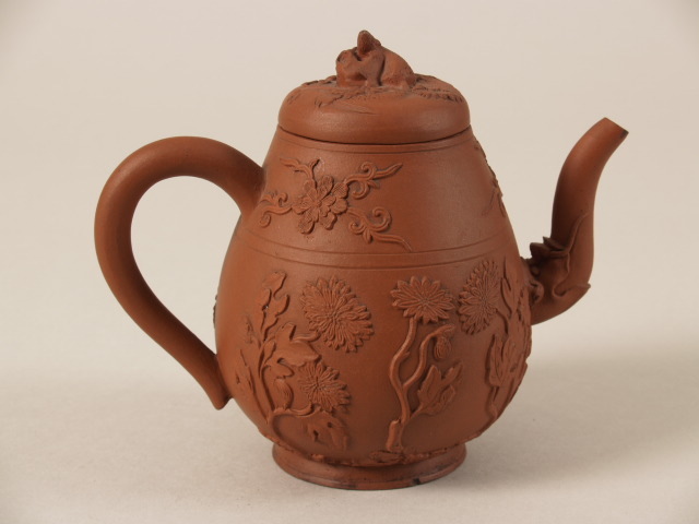 Theepot met decor van bloemranken en op het deksel een eekhoorn (Q25170)