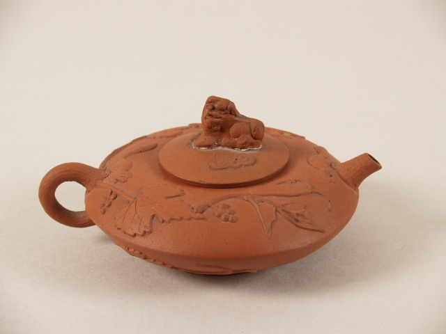 Theepot, rond en plat, met decor van druivenranken en eekhoorns (Q25182)