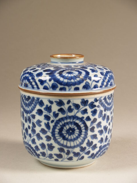 Pot met deksel en decor van patroon met rozetvormige bloemen (Q25267)