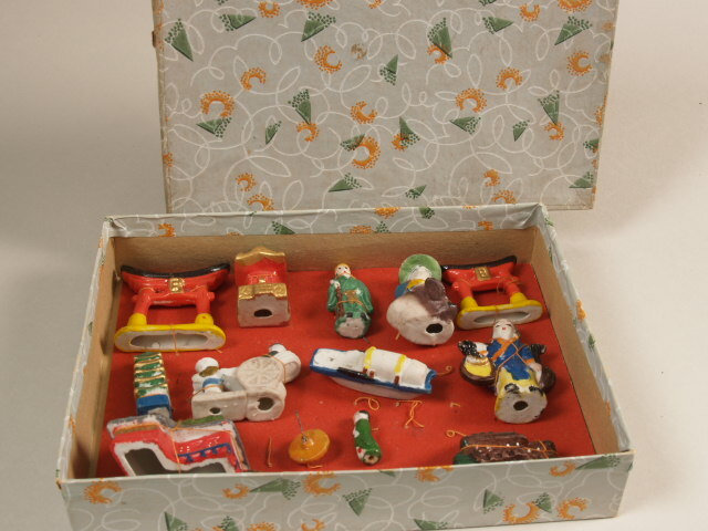 Doos met 13 miniatuurobjecten als kinderspeelgoed of kerstversiering (Q25303)