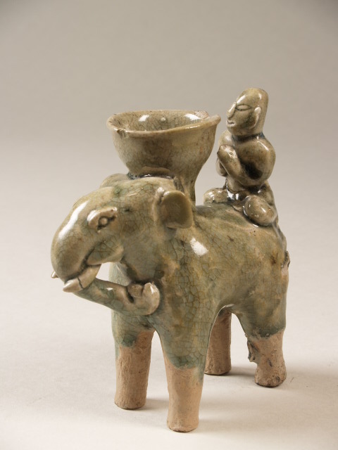Beeld in vorm van olifant met figuur, celadon (Q25336)