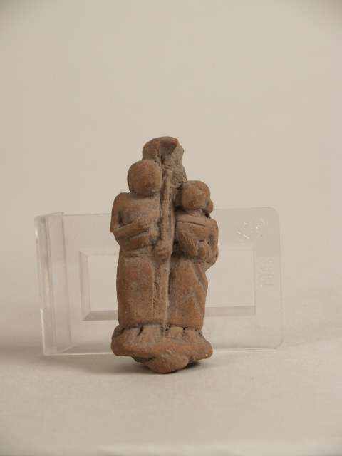 Beeld in de vorm een man en vrouw, staand aan weerszijden van een vertikaal voorwerp (Nederlands)
