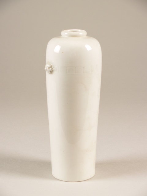 | Nederlands | Vaas met decor van 2 leeuwenkoppen in reliëf en meanderrand, blanc de chine |