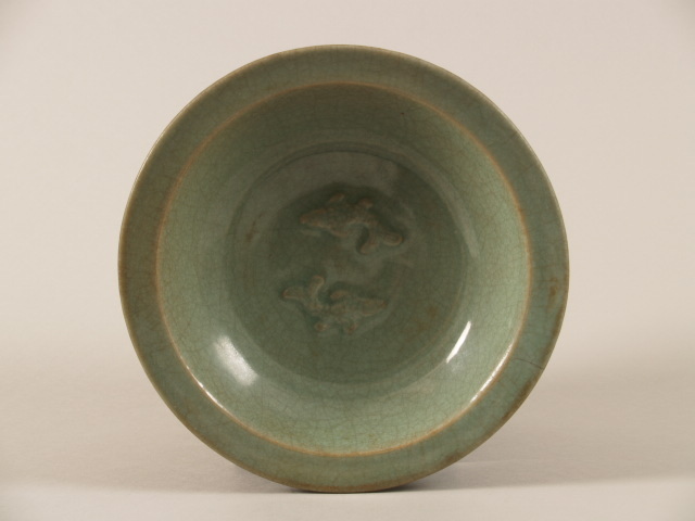 | Nederlands | Schaal met decor van 2 vissen in reliëf, celadon |
