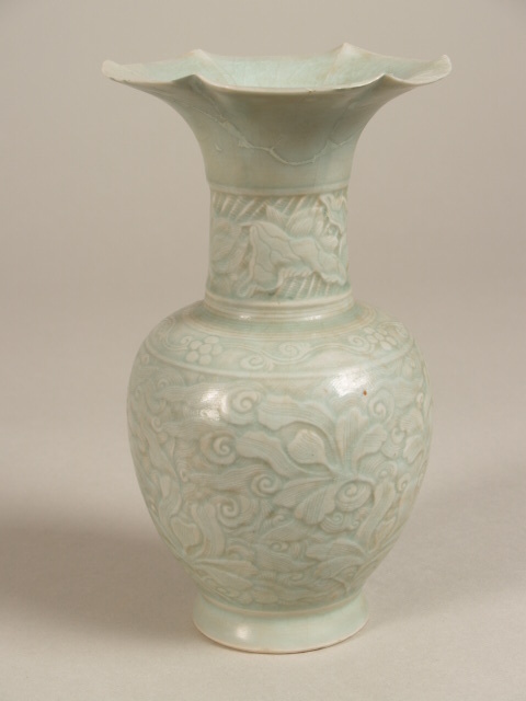 | Nederlands | Vaas met ingekrast decor van lotusbloemen en wolkmotieven, qingbai |