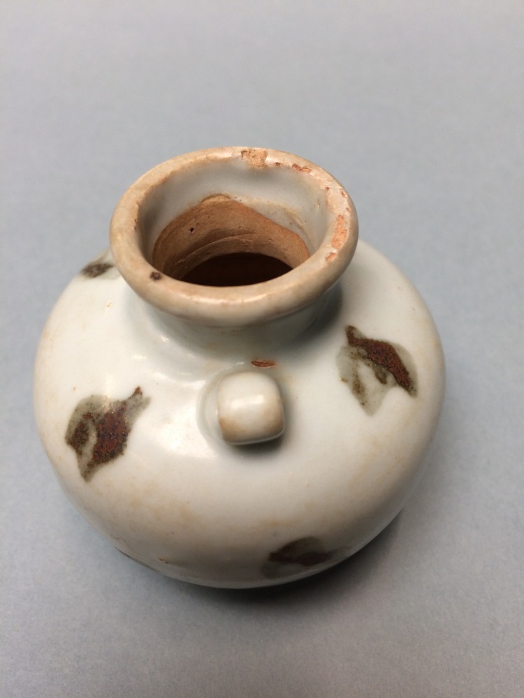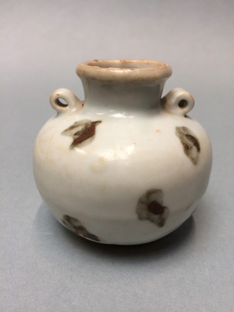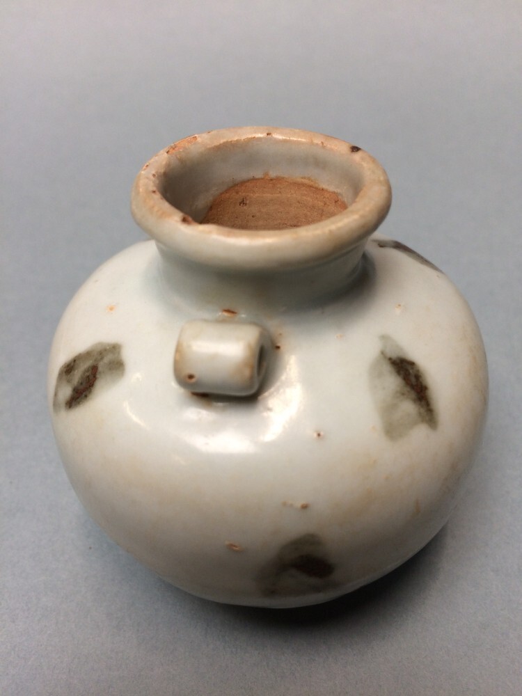 Potje met 2 oren en met decor van stippen (Nederlands)