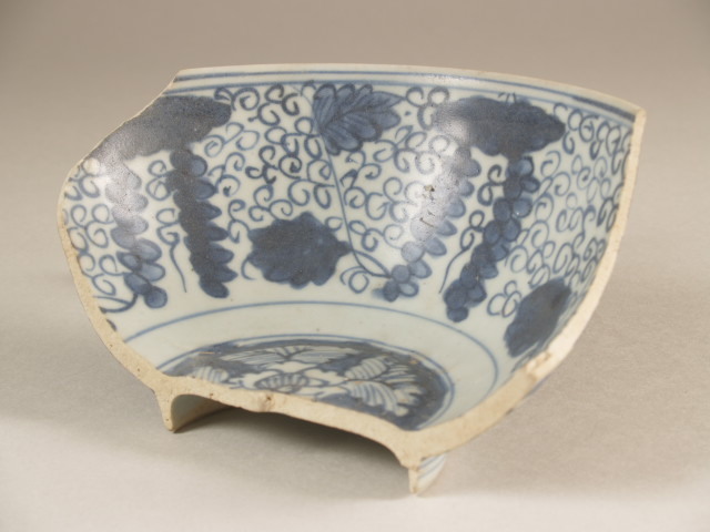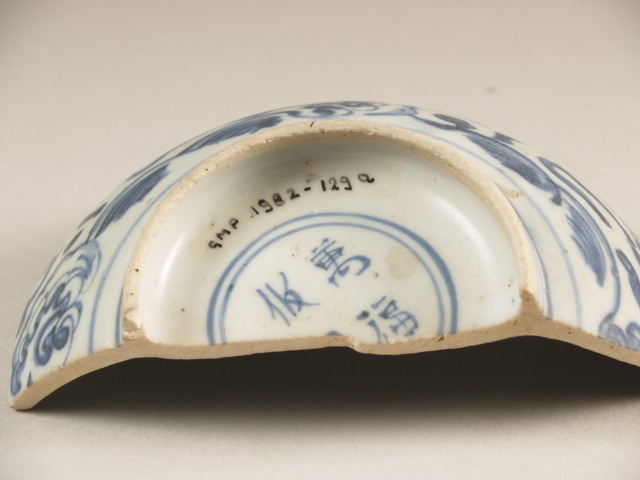Scherf van een kom met decor in onderglazuur blauw (Nederlands)