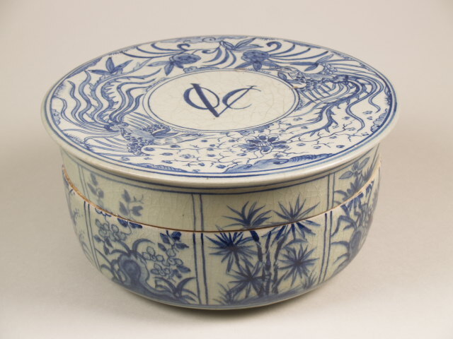 | Nederlands | Doos, rond, met deksel, VOC merk en decor van feniksen en florale motieven |