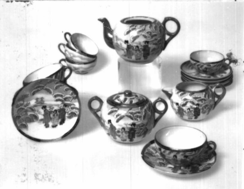 | Nederlands | Theeservies met polychroom decor van figuren en pijnbomen in winterlandschap |