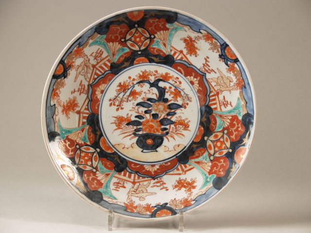 Schotel met decor van bloempot op plat, imari (Nederlands)