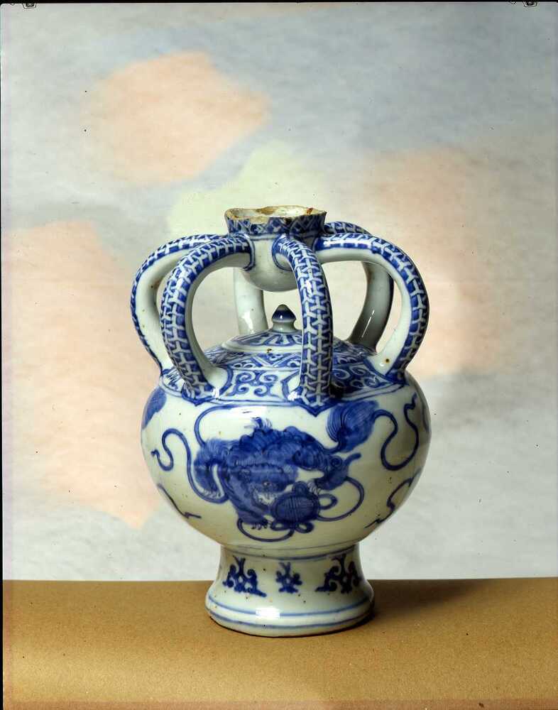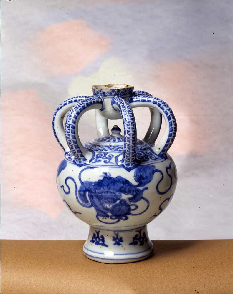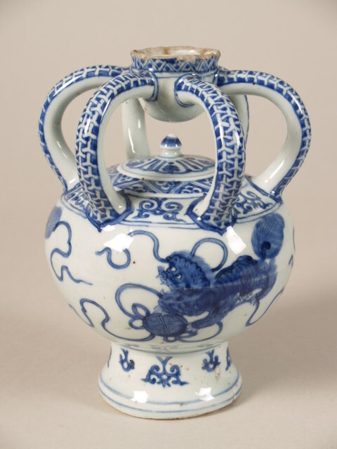 Parfumbrander of olielamp met decor van boeddhistische leeuwen (Q25574)