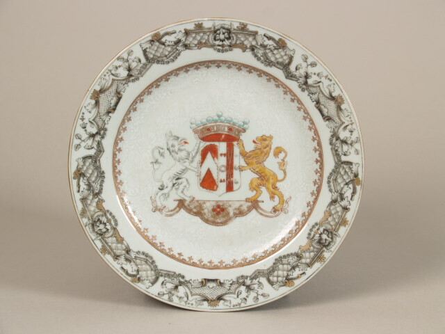 Bord gedecoreerd met het wapen van de familie Van Herzeele, chine de commande (Nederlands)