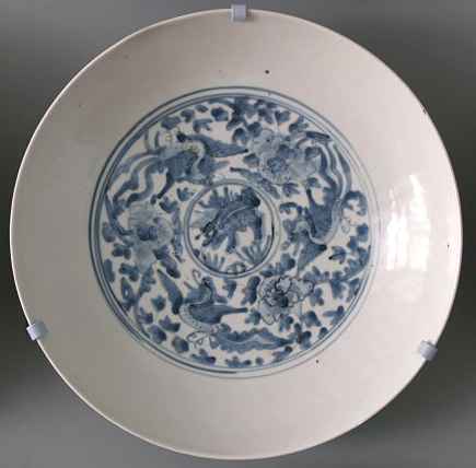 | Nederlands | Schotel met decor van qilin omgeven door 2 feniksen, Swatow |